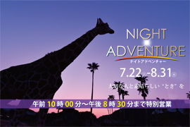 「ナイトアドベンチャー」をお楽しみいただける「トワイライト入園券」を販売いたします。
