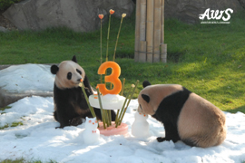 ふたごのパンダ「海浜」「陽浜」の3歳の誕生会を実施しました。