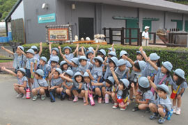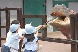 堅田保育園・堅田第二保育園の皆様にお越しいただき、カバの大きな口の中を、特製の大きな歯ブラシで磨いていただきました。