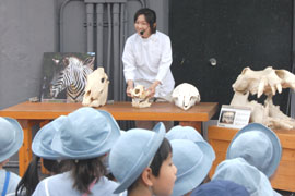カバがなかなかやってきてくれなかったり、歯ブラシをくわえて離してくれなかったりするハプニングもありましたが、獣医師によるカバとその他の動物の頭の骨の標本を用いた歯のレクチャーや、カバの歯の検診も行い、動物の歯について学んでいただきました。