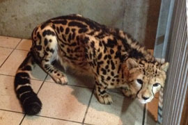 1歳のチーターは、斑点がつながり帯状の模様をもつ希少なキングチーターです。