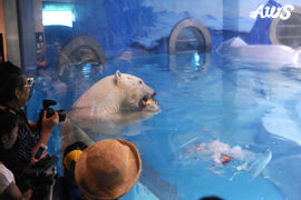 ・ホッキョクグマへ氷のプレゼント 午前9時45分(海獣館)