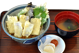 ファミリーで楽しめるメニューやキッズメニューそして、地元名産の太刀魚(たちうお)を使った「太刀魚丼」などもご用意しています。
