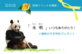 6月19日(日)は父の日ということで、お父さんパンダ「永明(えいめい)」に日ごろの感謝の気持ちを込めて、好物の4種類の竹を特別にプレゼントします!