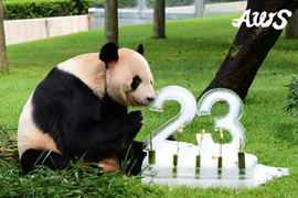 9月15日(木)、ジャイアントパンダ「永明」の誕生会を開催します。今月14日に24歳を迎える永明は13頭の子供たちのお父さんです。アドベンチャーワールドパンダファミリーの大黒柱に、感謝の気持ちとこれからも元気に過ごしてほしいという願いを込めて特製の氷のプレゼントを贈ります。