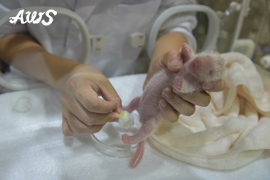 9月18日生まれのジャイアントパンダの赤ちゃん(メス)は、お母さんパンダ「良浜(らうひん)」に優しく抱っこされ、母乳をしっかり飲んでいます。