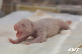 9月18日生まれのジャイアントパンダの赤ちゃん(メス)は今日も栄養満点の母乳をたくさん飲みました。おなかがいっぱいになって眠たくなったのか、可愛らしいあくびをしていました。