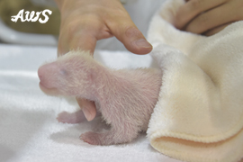 9月18日生まれのジャイアントパンダの赤ちゃん(メス)は、母親「良浜(らうひん)」に抱かれながら、腕の隙間からかわいい顔をのぞかせました。