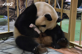 ジャイアントパンダの赤ちゃん(9月18日生まれ・メス)は今日も元気いっぱいです。