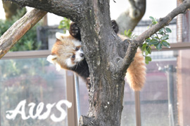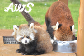 ファミリー広場内、レッサーパンダ展示場にて親子が元気に暮らす様子をご覧いただけます。