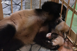 お母さんパンダ「良浜(らうひん)」も豪快な姿でぐっすり寝ていました。