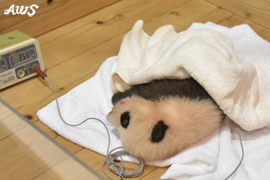 パンダの赤ちゃんの健康チェックは毎日の日課です。