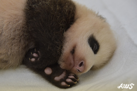 気持ちよさそうに眠っているパンダの赤ちゃん。