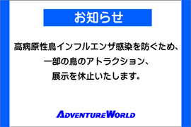 鳥インフルエンザ感染予防のためのアトラクション・展示の休止のお知らせ