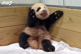 パンダの赤ちゃんはだいぶ耳が聞こえるようになり、物音にも敏感に反応するようになってきました。