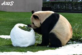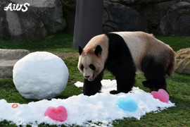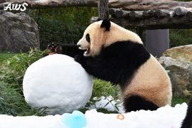 本日、ジャイアントパンダ「永明(えいめい)」「海浜(かいひん)」のバレンタインデーイベントを開催し、日ごろの感謝の気持ちを込めて2頭に大きな雪玉をプレゼントしました。