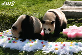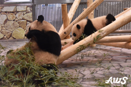 本日(3月3日)、ジャイアントパンダの赤ちゃん「結浜(ゆいひん)」、2歳のふたごのパンダ「桜浜(おうひん)・桃浜(とうひん)」のひなまつりイベントを開催しました。