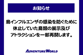 鳥インフルエンザ アトラクション・展示休止一部解除について