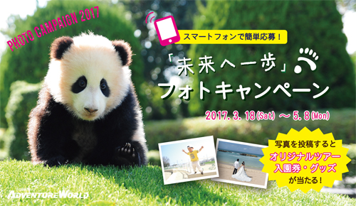 アドベンチャーワールドでは、2017年3月18日より「未来へ一歩」フォトキャンペーンを実施しています!昨年生まれたジャイアントパンダの赤ちゃん「結浜」も、この春屋外運動場にデビューしました。結浜の小さな一歩を記念して、みなさまの「〇〇デビュー」を募集しています。入選者様にはオリジナルツアーや入園券、オリジナルグッズをプレゼント!
