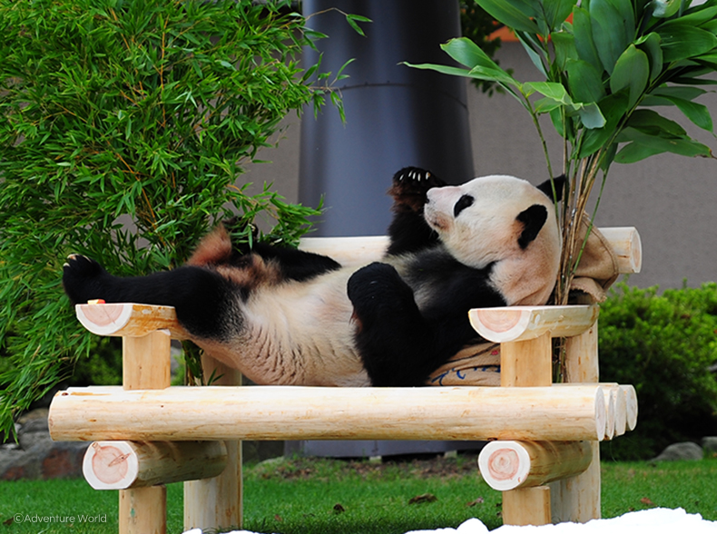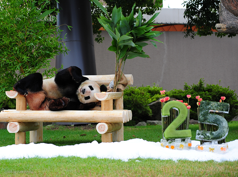 9月14日(木)、お父さんパンダ「永明」の誕生会を開催し、「25」をかたどった氷と木製の肘掛けイスをプレゼントしました!