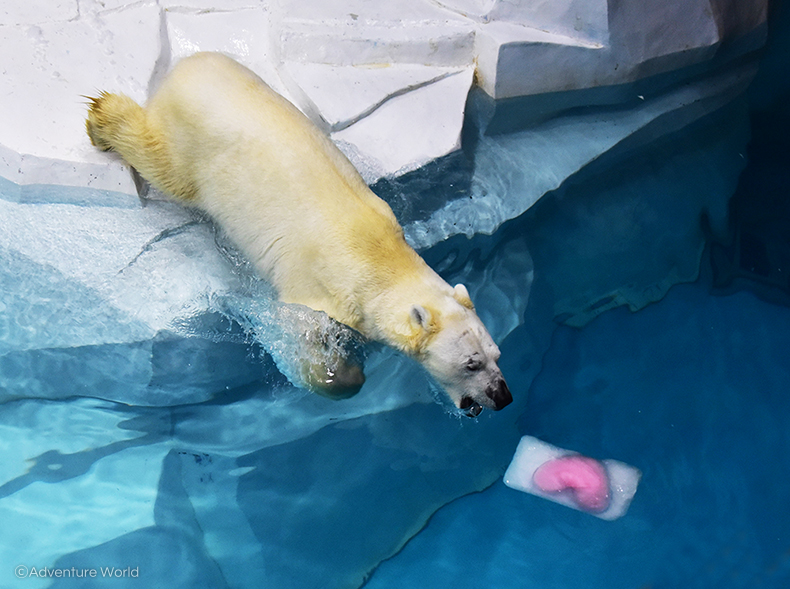 本日(2月13日)、バレンタインイベントを開催し、オスのホッキョクグマ2頭へ日頃の感謝の気持ちを込めて氷でできたラブレターをプレゼントしました!