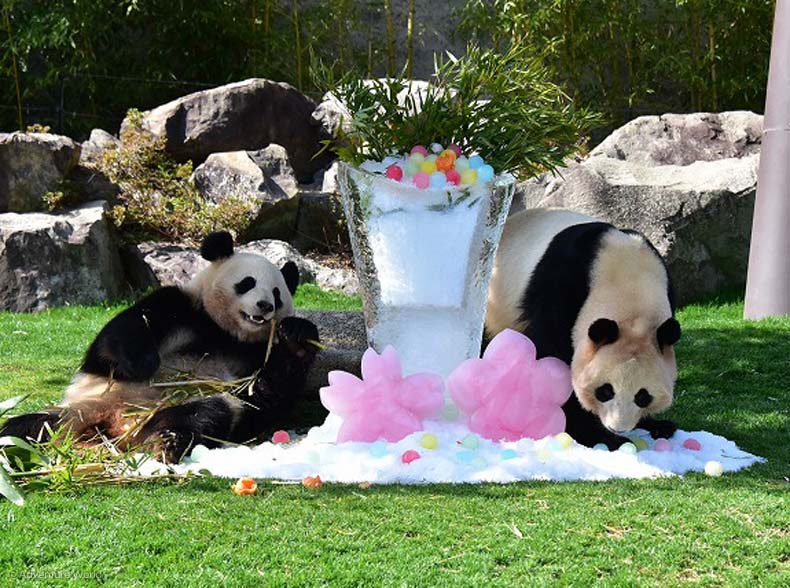 カラフルな氷や竹をのぞくおてんばな様子を見せてくれました。