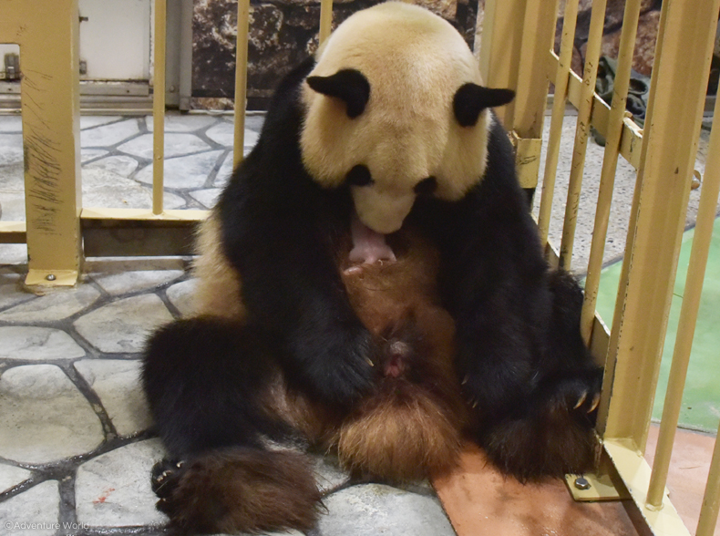 アドベンチャーワールドで飼育するオスのジャイアントパンダ「永明(えいめい)」、 メスのジャイアントパンダ「良浜(らうひん)」に、マーキングや水浴などの行動が増え、また「恋鳴き」と 呼ばれる特有の鳴き声を発するなどの、発情の兆候を確認しました。