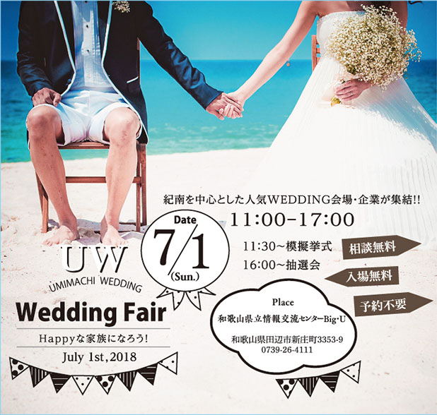 7月1日(日)和歌山県田辺市で開催の「海街ウェディングフェア」に出展します!