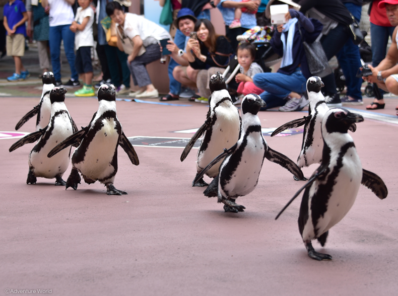 夕暮れ時、フラワー通り全長50mのコースをペンギンたちがお散歩します。ケープペンギンたちのよちよちパレードする姿に 思わず笑顔に。