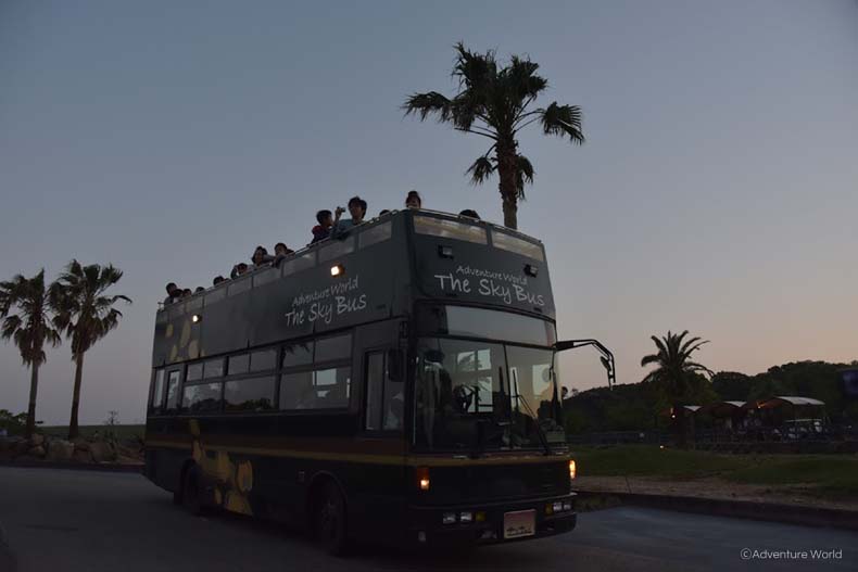 2階建てバスで、草食・肉食動物が過ごす夜のサファリワールドを巡ります。
