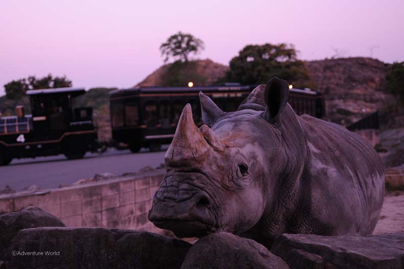 バスを降車し、シロサイが寝室帰っていく姿を目の前でご覧いただける、1日1便のスペシャルツアー。