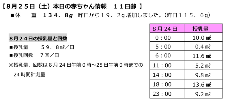 【8月25日(土)本日の赤ちゃん情報 11日齢 】