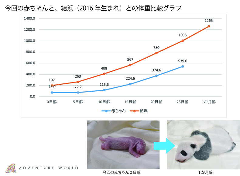 アドベンチャーワールドで過去最も小さく生まれた赤ちゃんは、出生当時、自力で母乳を飲むことができず心配されましたが、母親「良浜(らうひん)」の愛情深い子育てと、スタッフによる24時間のサポートにより順調に成長しました。無事生後一か月迎えられたことをお知らせいたします。