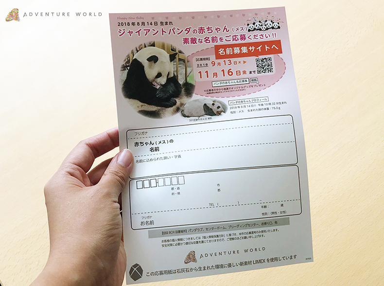 ジャイアントパンダの赤ちゃん名前募集 募集用紙にエコロジーな革命的新素材「LIMEX(ライメックス)」を採用