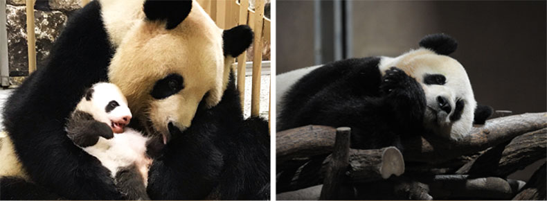 2018年8月14日生まれジャイアントパンダの赤ちゃんと母親「良(らう)浜(ひん)」父親「永(えい)明(めい)」の3頭が暮らしています。