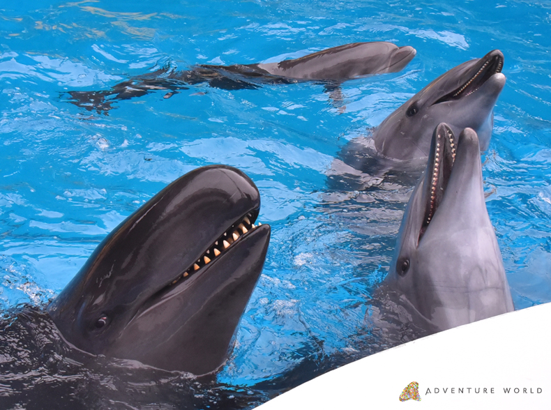 妊娠中のオキゴンドウは、現在子育て中のバンドウイルカの親子(母親、10月11日生まれの赤ちゃん)と同じスペースにいる時間を設けています。バンドウイルカから育児を学ばせ、オキゴンドウの出産・育成の成功につなげることを目的としています。2016年に発足した鯨類繁殖プロジェクトは鯨類の繁殖技術向上を目的に、アドベンチャーワールド初となるオキゴンドウの育成の成功を目指します。