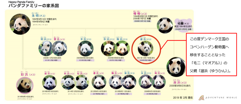 この2頭のジャイアントパンダのうち、メスの「毛二(マオアル)」が、「永明(えいめい)」の孫にあたるというご縁があり、ご来園にいたりました。