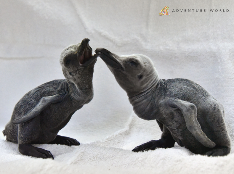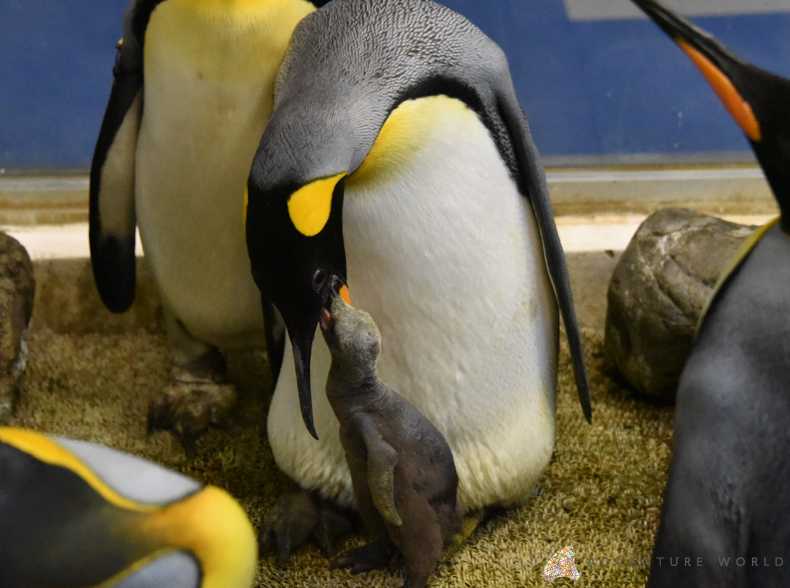 アドベンチャーワールド(和歌山県白浜町)では、2019年1月から2月にかけてキングペンギンが ベビーラッシュを迎え、6羽の赤ちゃんが誕生しました。その内の5羽はペンギン王国で親子一緒に暮らしており、1羽は人工育雛を行っております。キングペンギンは全18種のペンギンの中で2番目に体が大きく(体長85〜95cm)、成長すると胸元や頭部の黄色い模様が大変色鮮やかなことから、世界で最も美しいペンギンと言われています。