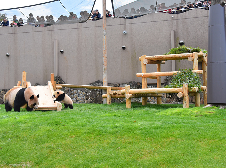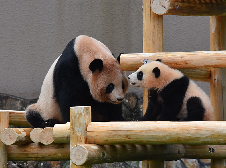 ジャイアントパンダの赤ちゃん「彩浜(さいひん)」が母親「良浜(らうひん)」とともに、屋外運動場デビューしました!