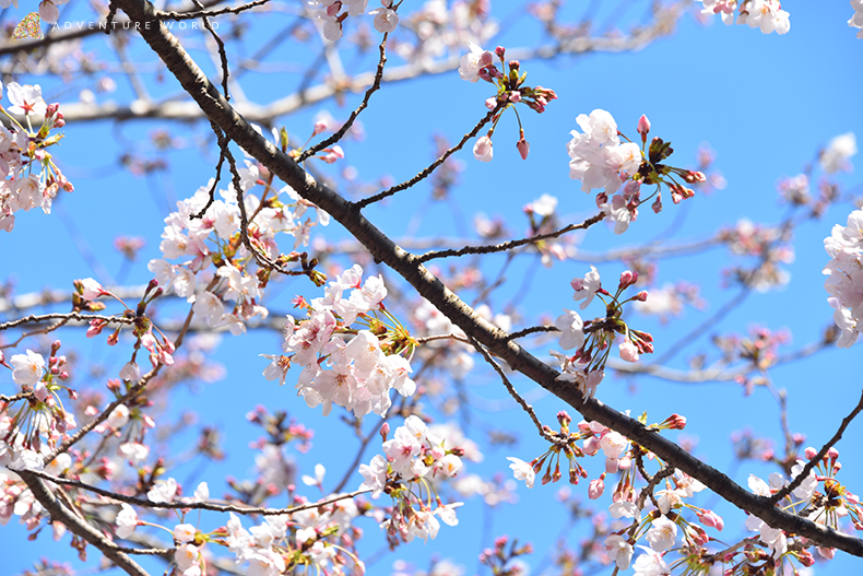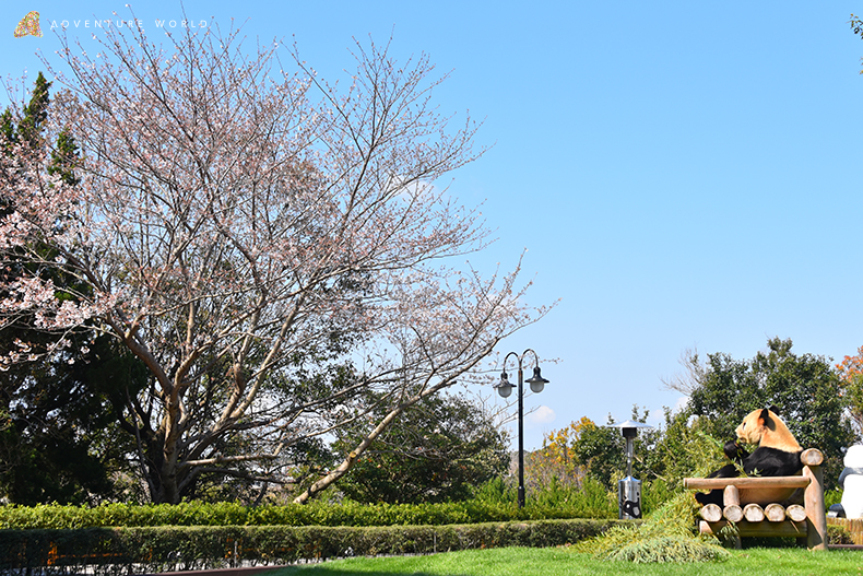 「永明」とともにお花見をお楽しみいただけます。現在パーク内の桜は、だんだんと花を開き始め、満開もまもなくです。