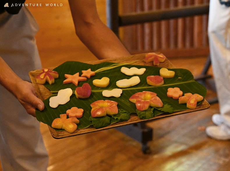 そして、大好物のリンゴとニンジン、ハクサイで作った特製プレートをプレゼント。