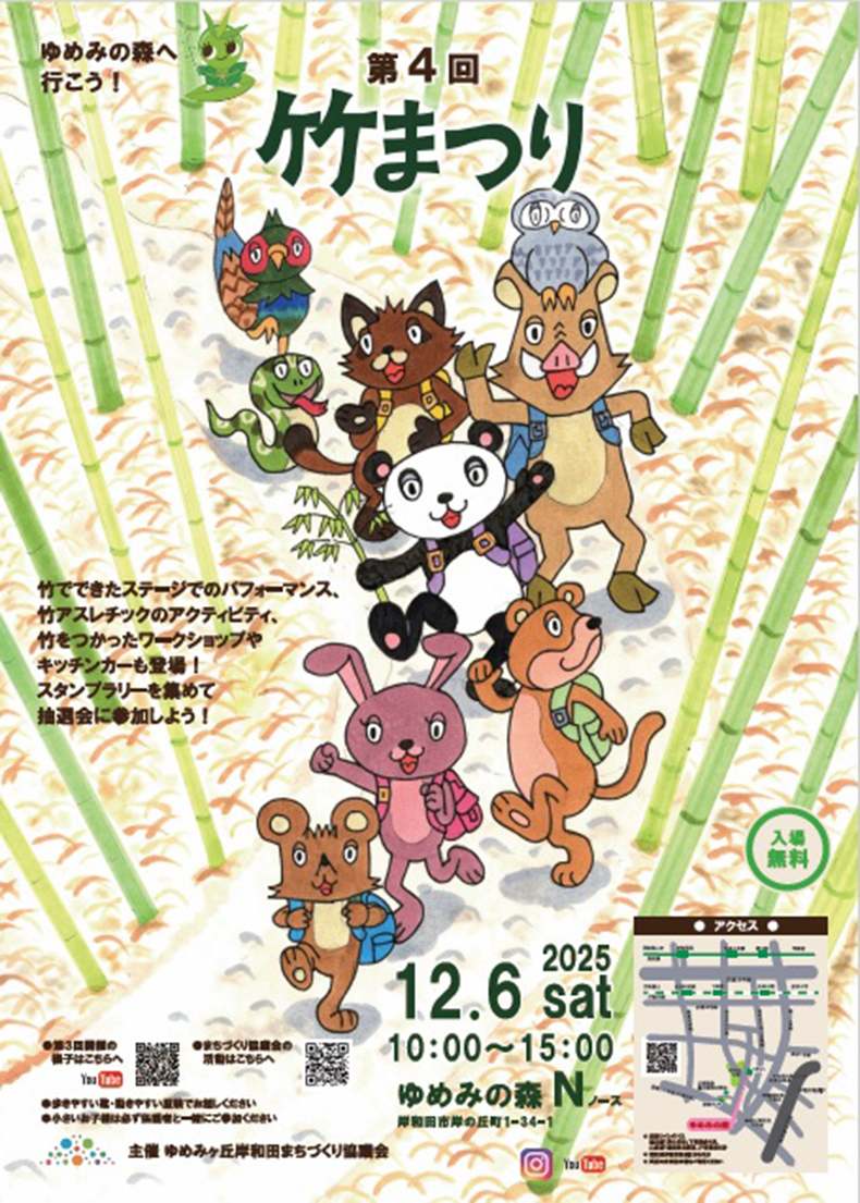 アドベンチャーワールドは、この取り組みを未来につなげるため、2025年12月6日(土)開催の「第4回竹まつり」(主催:ゆめみヶ丘岸和田まちづくり協議会)にて、フクロウの巣箱づくりワークショップや繁殖環境の整備、アドプトフォレスト活動の紹介展示を通じ、地域とともに進める“参加型の森づくり”をさらに推進してまいります。