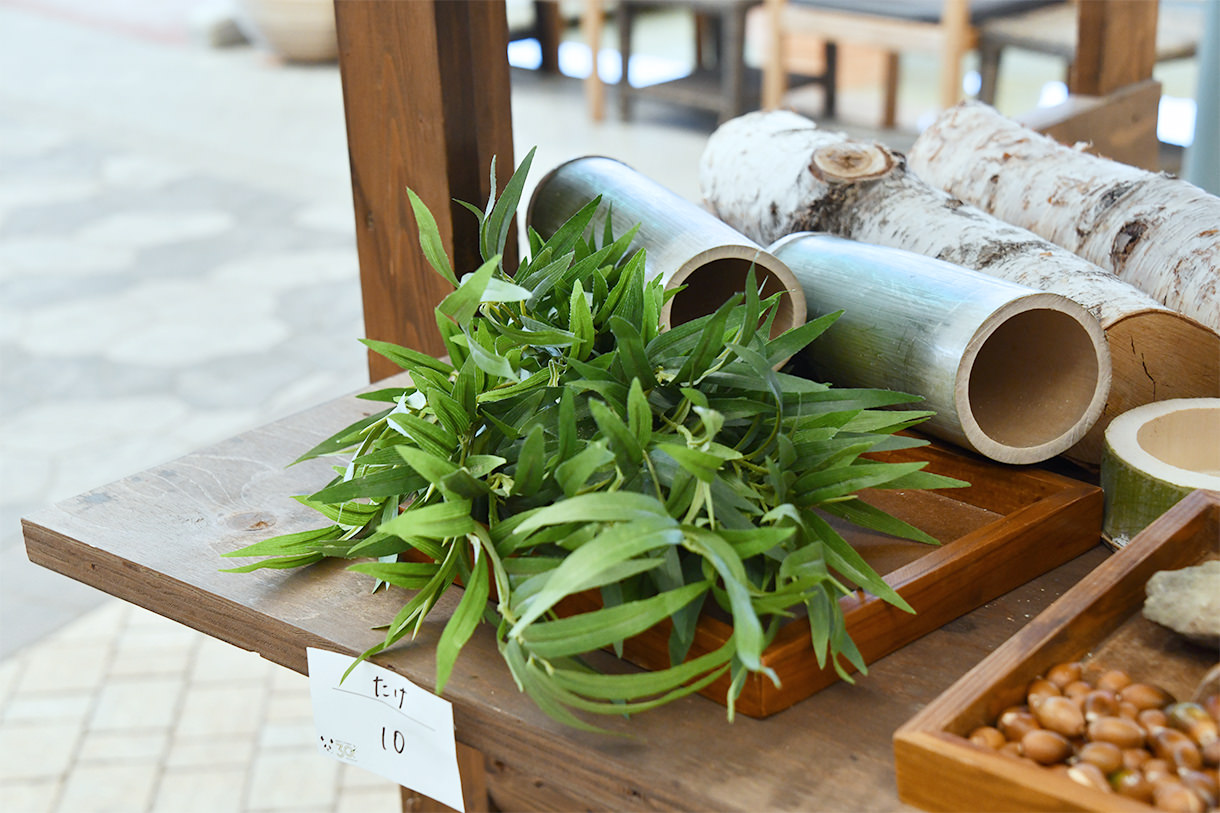 拾ってきた竹・小石・どんぐりなど、