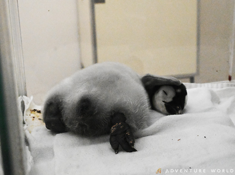 エンペラーペンギンの赤ちゃんは安定した成育につなげるために卵を親から預かり、孵卵器にて孵化させ、赤ちゃんの体重がある程度成長するまで人の手で育て、体力をつけてから親鳥へ返す「初期人工育雛」を行い、体重の変化を見ながら自然育雛に向け、親鳥とは別の若いペアの元へ託すチャレンジもしてきました。