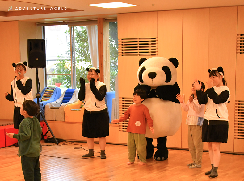 ダンスパフォーマンスでは、天候の影響により屋内での開催となりましたが、会場は熱気に包まれました。ダンスパフォーマーやパンダのキャラクターと一緒に、子どもたちやご家族がリズムに合わせて体を動かし、楽しいひとときを過ごしました。