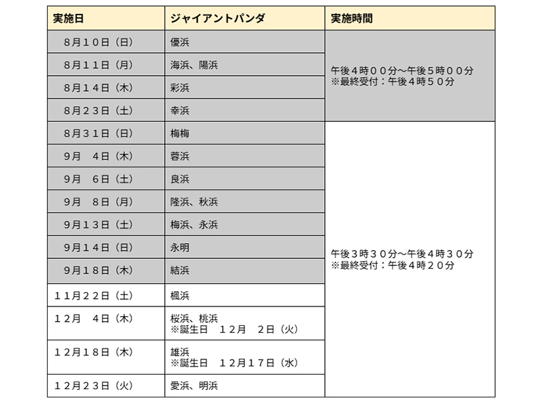 内容 これまでパンダたちが過ごしてきたブリーディングセンターの屋外運動場を歴代のエデュテイナー(飼育スタッフ)によるガイド付きで特別に入場することができます。