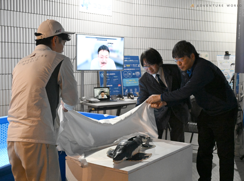 第2期として、アドベンチャーワールドのスタッフが制作に関わり、最新のロボット技術で“泳ぐ姿”を再現したワカヤマソウリュウロボットの制作を続けておりました。完成お披露目会を本日(11月21日)開催しました。