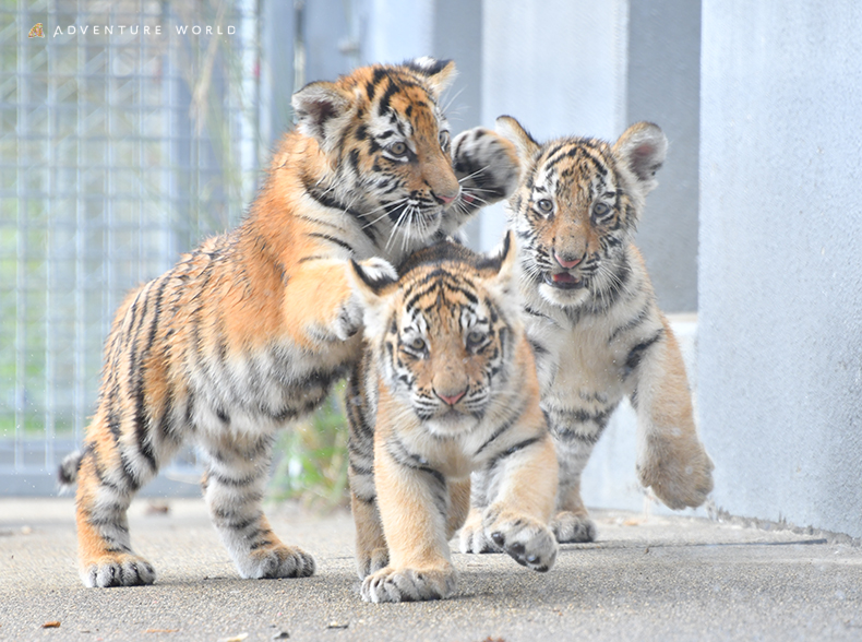 アドベンチャーワールドでは、2025年7月15日に誕生した生後5か月のアムールトラの赤ちゃん3頭と母親の一般公開を2025年12月26日(金)より金、土、日、祝日限定で開始いたします。