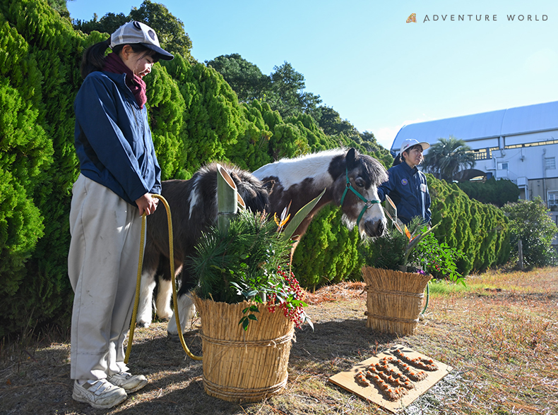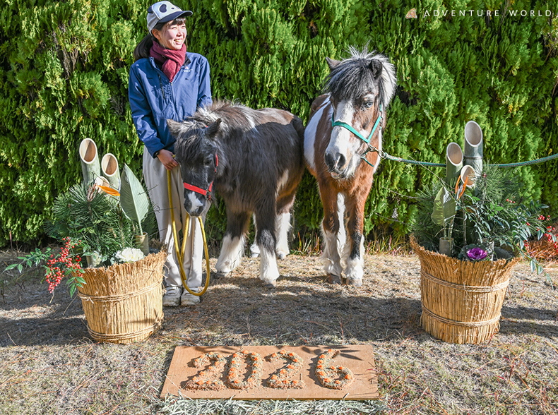 2026年もウマくいく素敵な1年になることを願って、本日(12月26日)開園前に、人間でいうと100歳にもなる、来年36歳を迎える“年男年女ポニー”2頭による迎春セレモニーを開催しました。