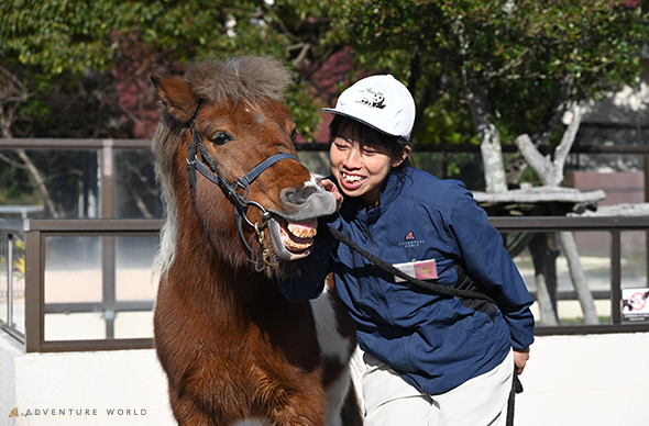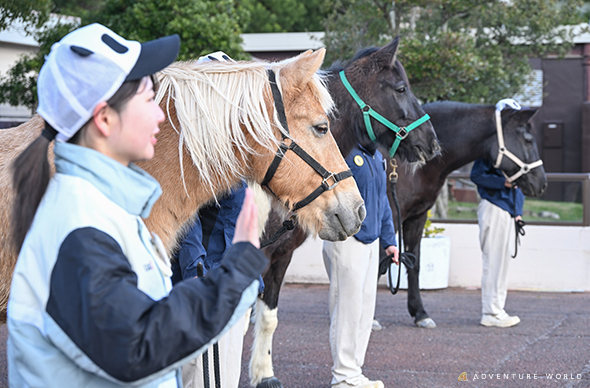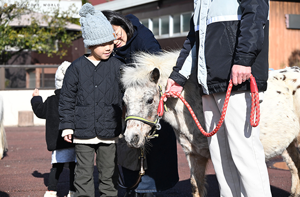 開園時には、ウマ・ポニー・ミニチュアホースがゲストの皆様をお出迎えし、記念撮影やふれあいをお楽しみいただけます。